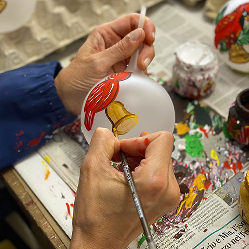 At the end of this treatment, the product passes into the hands of the decorators, who using the appropriate colors create the final design on the surface of the object.