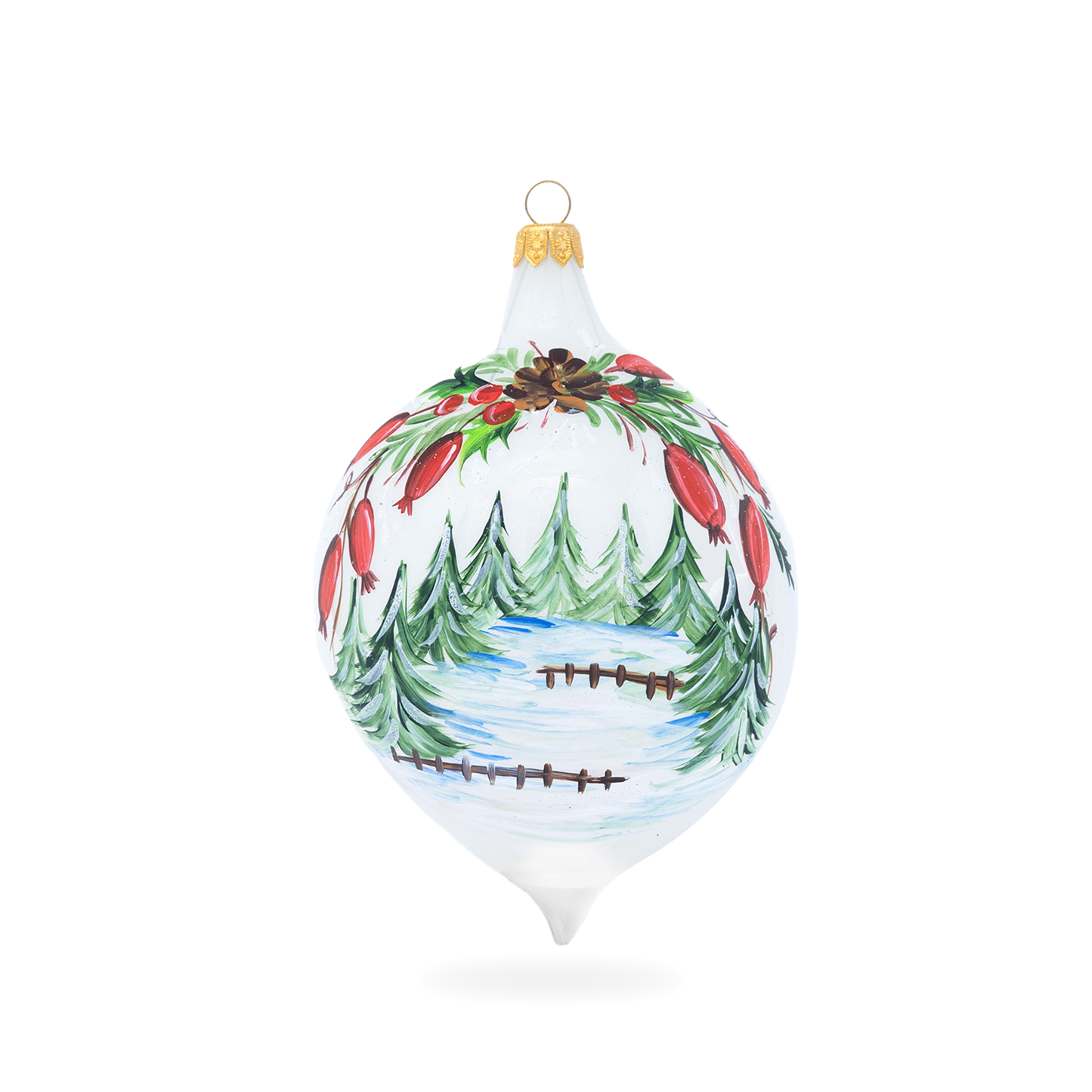 Dipinta a mano, soggetto paesaggio pini e agrifoglio.