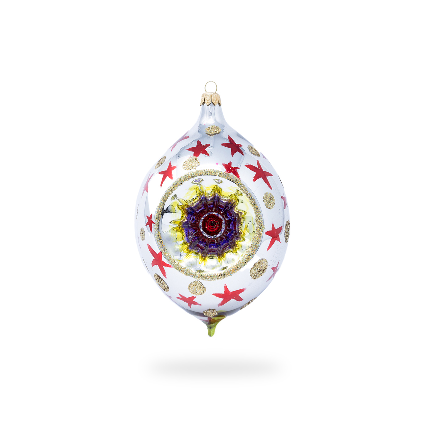 Ovale di Natale Ø 100mm, in vetro soffiato argentato.