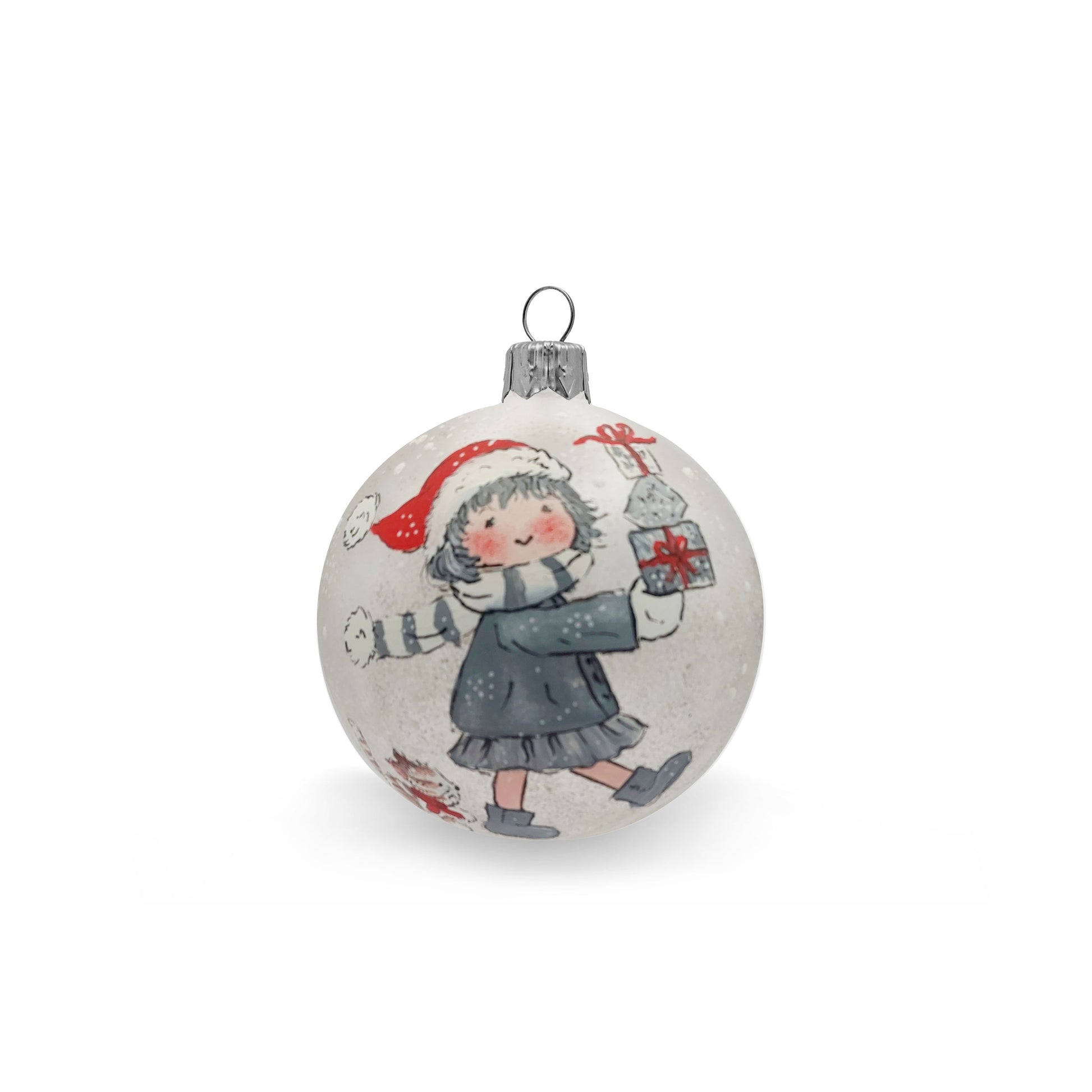 Dipinta a mano, soggetto bambina con pacco regalo.