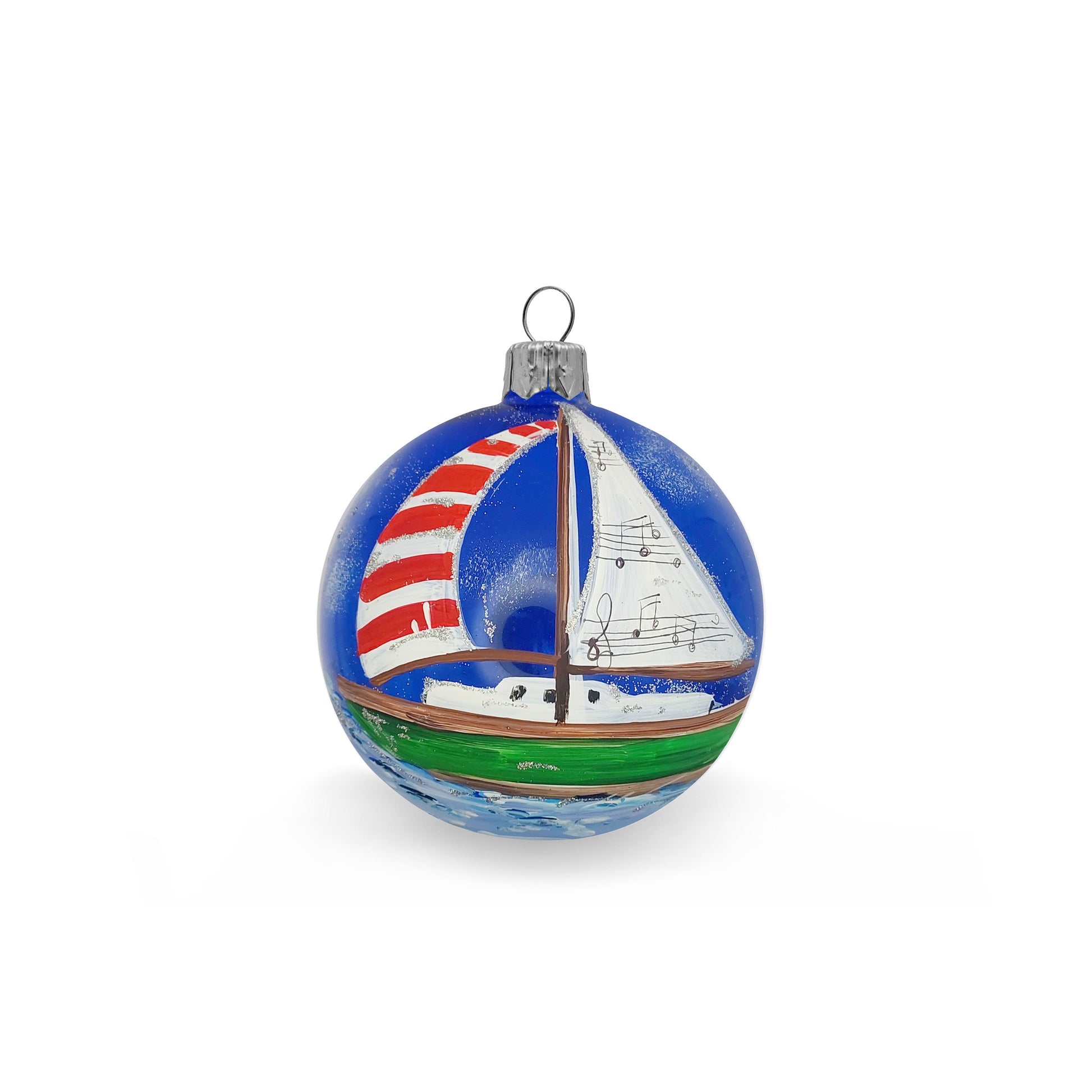 Dipinta a mano, soggetto barca e note musicali.