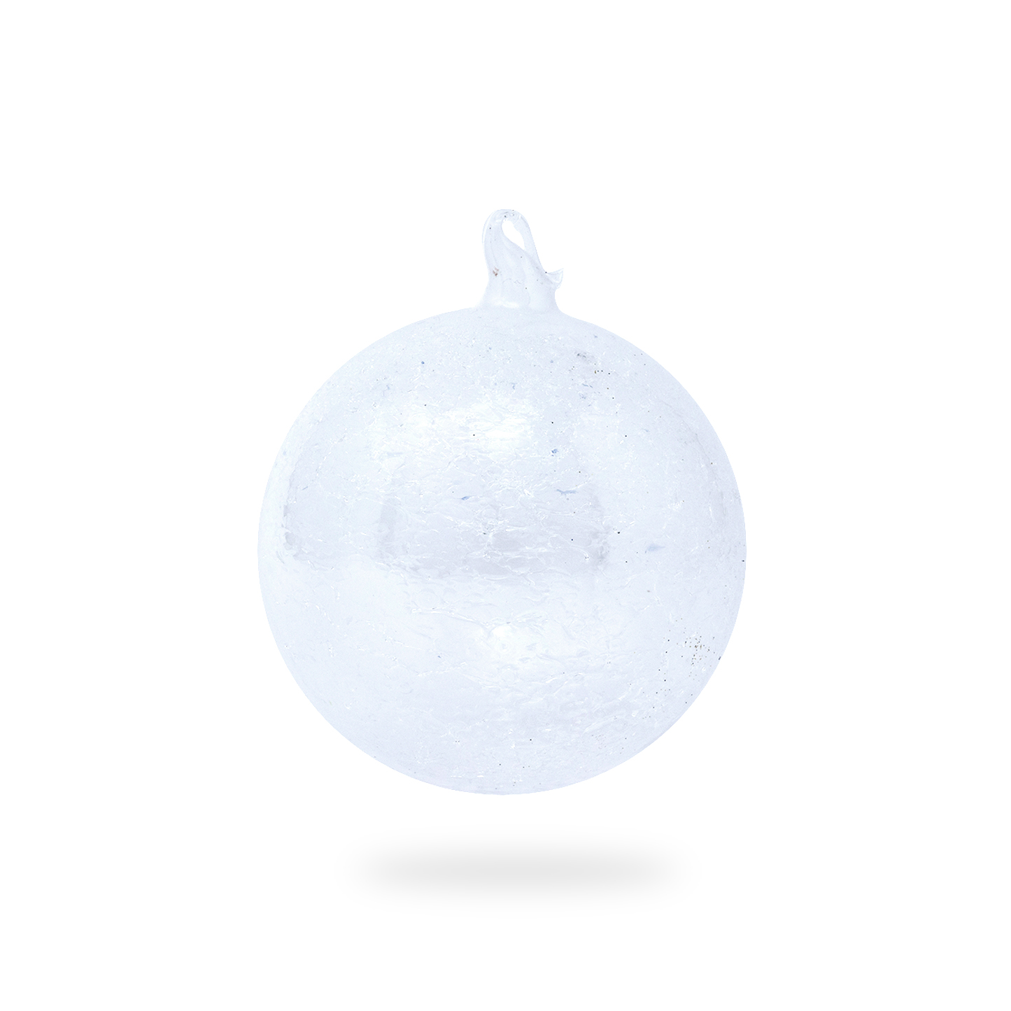 Palla di Natale Ø 100mm, in vetro soffiato trasparente con all'interno scaglie di vetro trasparente e gancio.