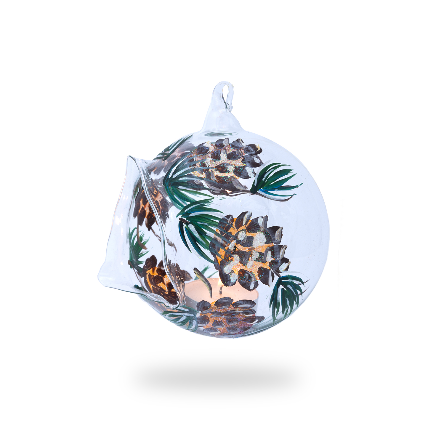 Portacandele aperto di Natale Ø 100 mm, in vetro soffiato trasparente da appendere.