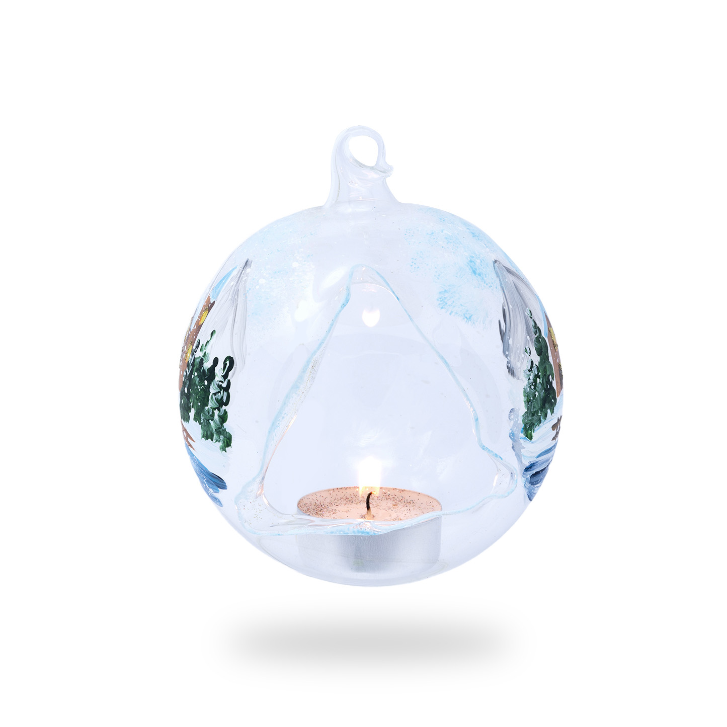 Portacandele aperto di Natale Ø 100 mm, in vetro soffiato trasparente da appendere.